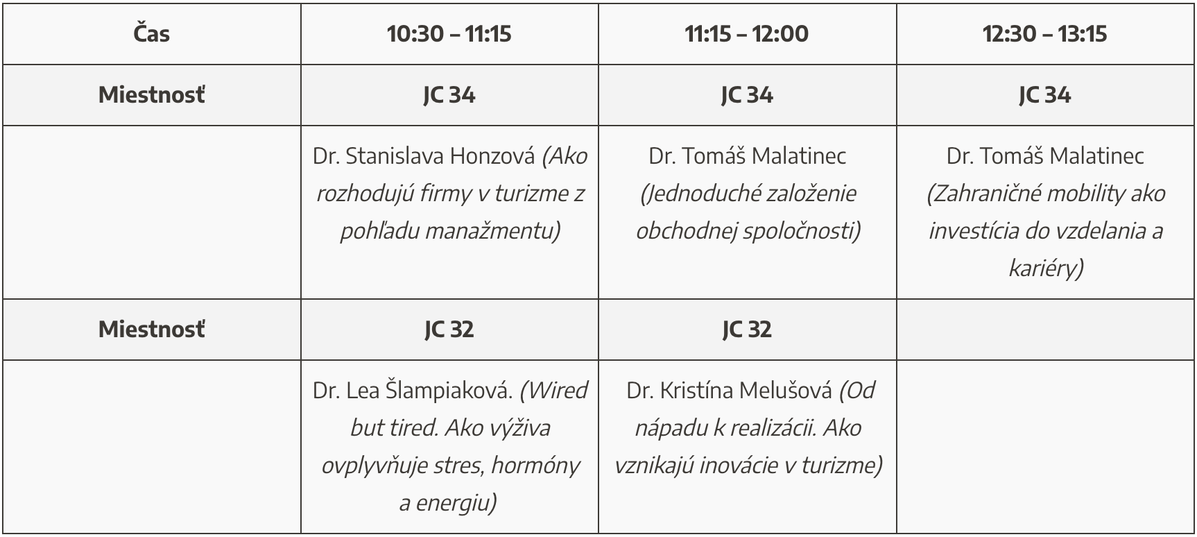 Harmonogram prednášok:
